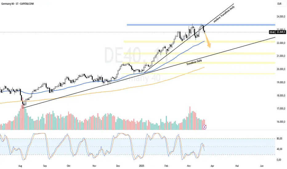 Ich setzen daher auf Shorts. JEdoch wäre erst der Bruch des Supports bei ca 22.150 - 22.100 ein deutliches Signal auf Tagesbasis. Zuvor schaue ich in den kleineren Timeframes nach SHort Signalen