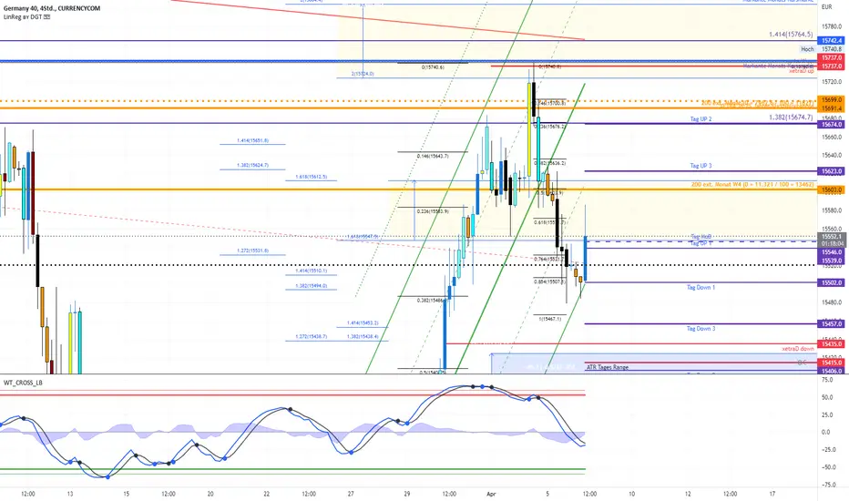 Den Flipping-Point (Sigma n1) sehen wir bei 15.637 bzw. 15.403. D.h. ab diesen Zonen kann es zu sich selbst verstärkenden Reaktionen UP wie DOWN kommen.