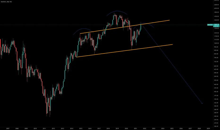 Das Dow Jones vs Silber - Ratio könnte eine Schulter Kopf Schulter Formation im langfristigen Trend gebildet haben.