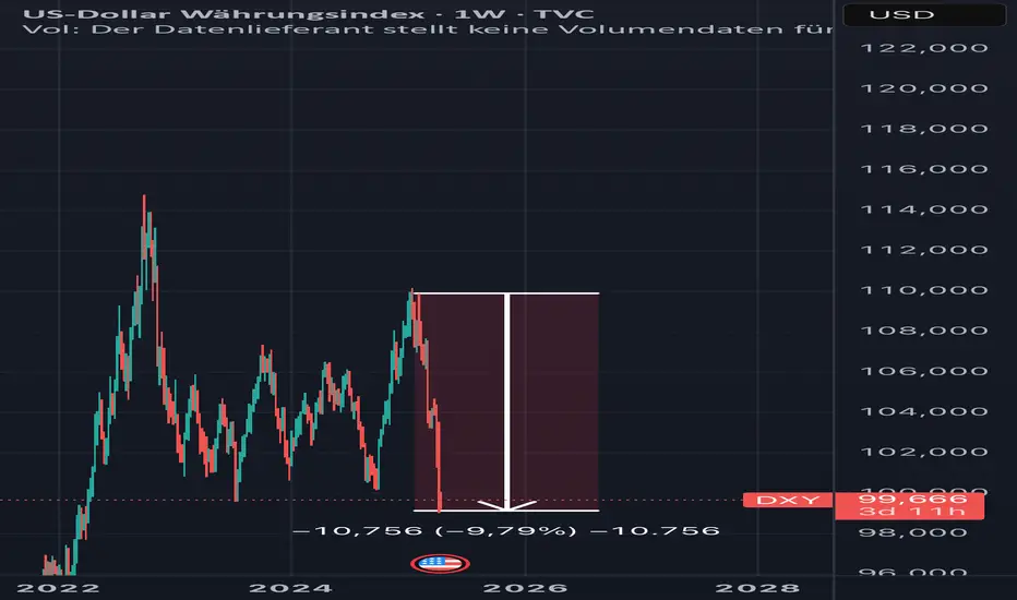 Aktuell steht der DXY bei 99,4 Punkten – und hat seit dem letzten Hoch fast 10 % verloren. Damit nähert er sich einem wichtigen Support-Level.