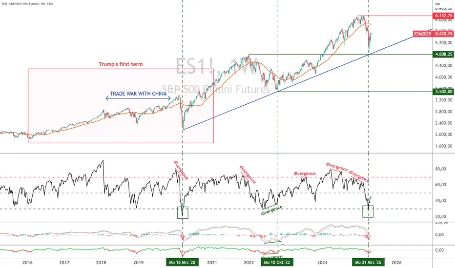 Nur der Weg der Handelsdiplomatie kann den Pfad der US-Disinflation intakt halten und somit der Federal Reserve erlauben, die Senkung des Zinssatzes für die Federal Funds aus einem gesunden Grund (d. h. einer Inflation, die gegen 2% tendiert, und einer stabilen Arbeitslosenquote von rund 4% der Erwerbsbevölkerung) wieder aufzunehmen. Diese Wiederaufnahme der Senkung der Federal Funds Rate ist entscheidend, um das große Tief des S&P500 auf der Unterstützung von 4800 Punkten zu bestätigen.