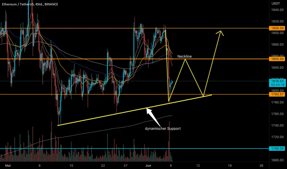 Es ist gut vorstellbar, dass wir einen Retest auf die Neckline des M-Patterns bekommen, um dann einen soliden Boden am dynamischen Support zu bilden. 👍