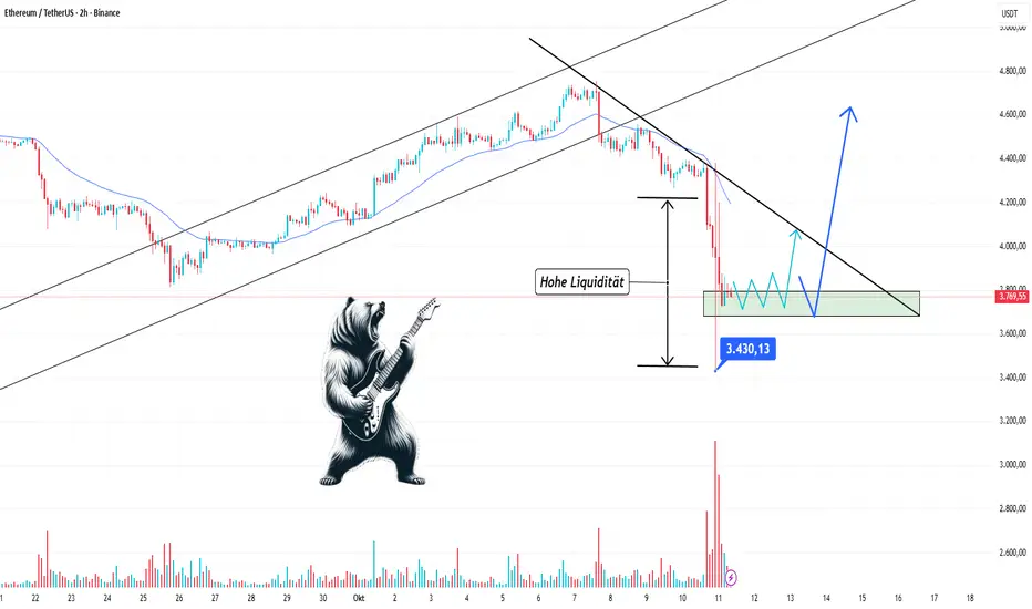 Die Unterstützungszone 3430 – 3550 ist weiterhin ein wichtiges Akkumulationsniveau, bevor es zurückgeht und die Zone 4000+ erneut testet.