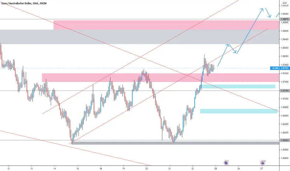 EURAUD befindet sich momentan im Short Kanal. Unten hat auch die Unterstützung schön gehalten und da hat er auch ein Doppelboden gebildet. Nun legt er von der Short Bewegung die Korrektur ein und wandert rauf. Er hat auch am Freitag das 60er Short Fibo von der letzten Short Bewegung gebrochen und hat auch gleich einen Retest gemacht. Dadurch das er sich am Freitagabend dort ein wenig festgesessen hat, ist es schwierig im jetzigen Bereich einen Einstieg zu finden. Der einzige Einstieg, den ich mitnehmen würde, wäre der Punkt 2 Einstieg beim letzten höheren Hoch. Sehen wollen wir denn an der oberen Linie des short Kanals. Aufpassen müsste man oben bei der Widerstandszone und darüber befindet sich auch gleich die 30er Short Fibo Marke aus der letzten Short Bewegung. Wenn man merkt, dass ihm in diesen Bereich die Luft ausgeht, sollte man ¾ der Positionen schließen und den Rest auf BE absichern, oder den SL einfach nachziehen.