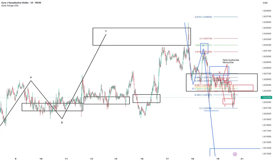 Rot sollte sich unterhalb des blauen BC nicht mit drei aufeinanderfolgenden Korrekturen im Wendebereich zeigen. Wie im Chartbild bereits erläutert, sehe ich das korrektive Verhalten als Teil von weiteren bullischen Aufbauversuchen und die Korrekturen gehen nicht von den Bären aus.