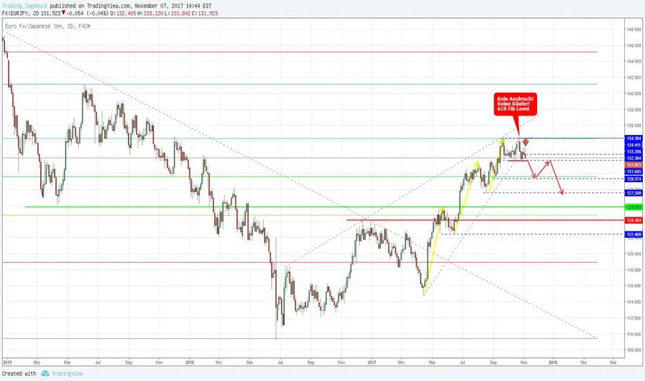 Ein Ausbruch gen Süden triggert das doppel top und bricht den bullischen trend. Daher für mich ein Short Signal.