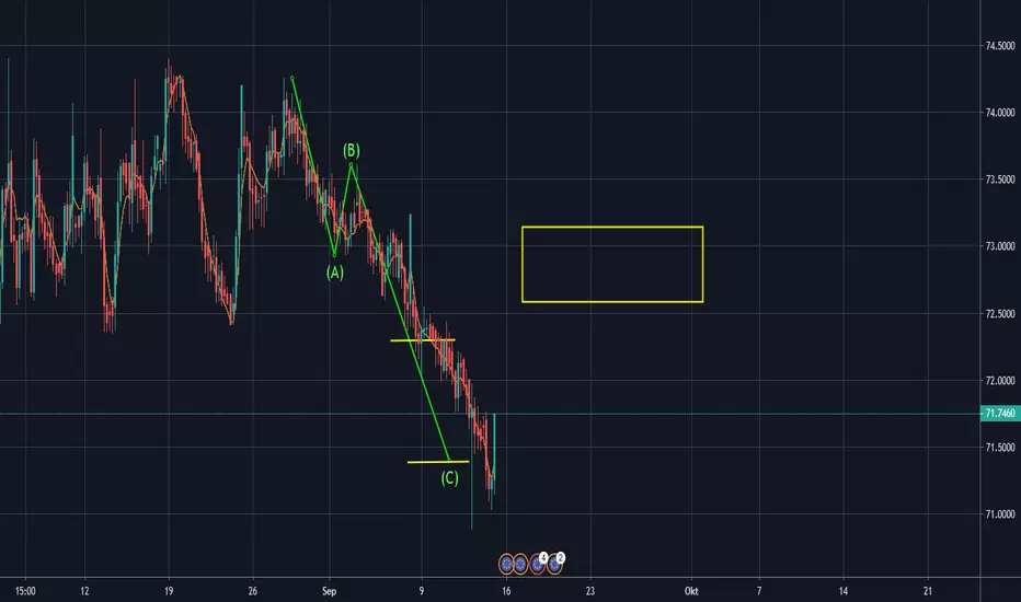 meine Analyse vom letzte Woche hat TP gehittet. Nun soll der Markt bis zum gelben Rechteck korrigieren und danach weiter short gehen!