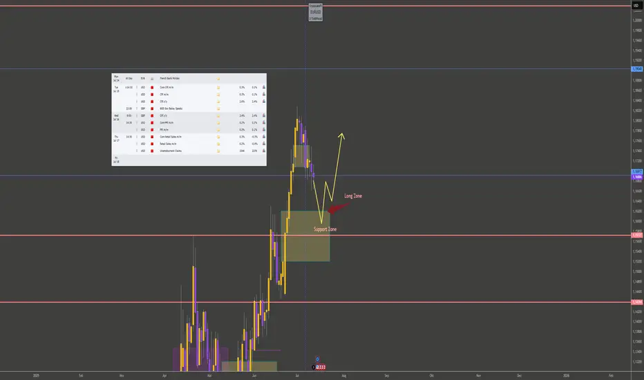 Ich möchte sehen, dass wir bis etwa Mittwoch in diese Zone eintauchen und dort klare bullische Reaktionen zeigen. Das wäre für mich ein Signal, um wieder Long im Euro zu gehen.