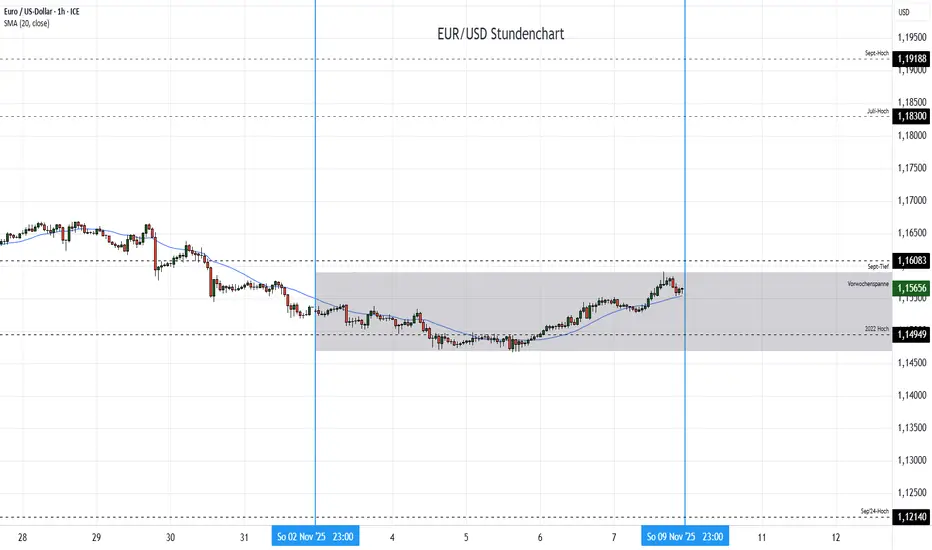 Abhängig vom Wochenstart könnte der Kurs am Dienstag zeigen, ob sich ein Erholungsszenario bildet und Notierungen über 1,16 wieder etabliert werden können. Alternativ wäre eine Schiebephase innerhalb der Vorwochenspanne zu erwarten.