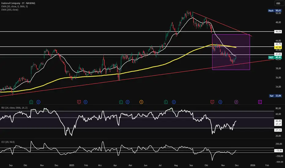Fastenal befindet sich im Wochentrend schön im unteren Bereich eines positiven Channels. Deshalb ist diese Einschätzung so einfach: