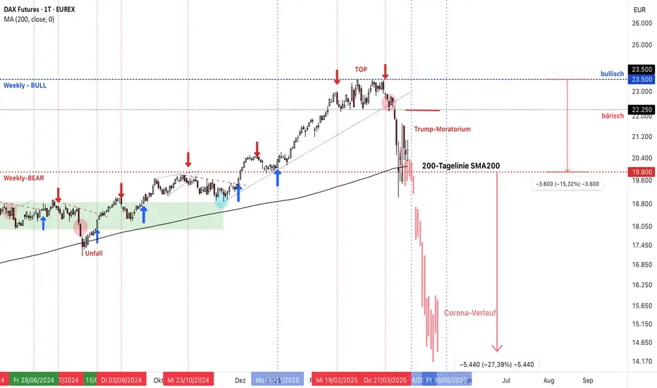 Der DAX konnte sich mit dem Aussetzen der US-Zölle für 90 Tage etwas erholen und liegt jetzt bei 20697 Punkten. Damit schwankt er um die 200-Tagelinie und handelt diese aus.