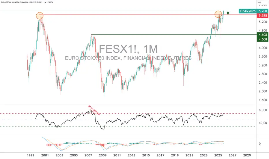 Im Oktober 2025 überschritt der Euro Stoxx 50 diesen historischen Schwellenwert und stieg über 5.600 Punkte. Technisch validiert dieser Ausbruch das Verlassen einer langfristigen Seitwärtsstruktur. In der Chartanalyse wird das Überwinden eines so alten Widerstands oft als bullishes Signal interpretiert, das auf eine nachhaltige Verbesserung der Anlegerstimmung für die europäischen Märkte hinweist.
