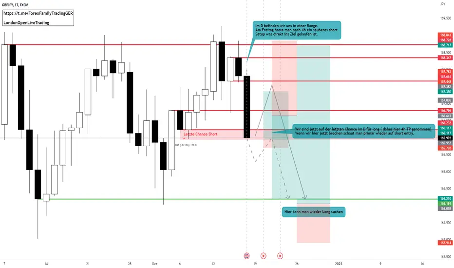GBPJPY befindet sich in einer D Range. Am Freitag konnte man ein sauberes 4h short setup mit nehmen.