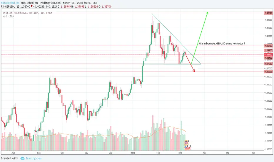 Nach einem schönen Aufwärtstrend im Daily des GBPUSD, befinden wir uns vermutlich gerade in einer Korrektur. Der „Trade war“ und die aktuell ausgeprägteren fundamentalen Einflüsse lassen sich aus dem Markt jedoch nicht wegdenken, Trump sei Dank. Stellt sich nun die Frage, kommt es bald zu einer Trendwende oder beendet dieser Markt einfach seine Korrektur? Aktuell könnte er die Supportzone bei 1.37595 noch einmal anlaufen. Bei einem Abprall rechne ich mit dem Ende dieser schon recht lang anhaltenden Korrekturphase und tendiere zu einem nächsten Hoch bei 1.43840 in den nächsten Wochen. Sollte GBPUSD allerdings an der Supportzone 1.37583 durchbrechen, könnte er fallen bis 1.36598