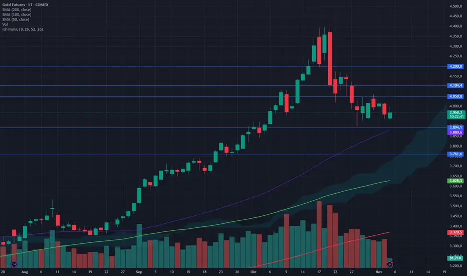 ● Short 4050–4100: Qualität: Mittel – Retest in fallende EMAs; Ziel 4000 → 3960.