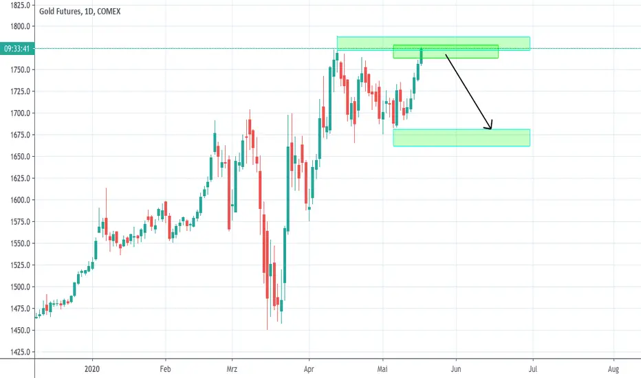 Ich gehe zwischen 1763$ und 1800$ Shortpositionen mit SL bei 1830$ ein. Das Ziel liegt vorerst am unteren Ende der Konsolidierung bei 1675$. Hier kann dann ein Einstieg in den langfristigen Trend gesucht werden.