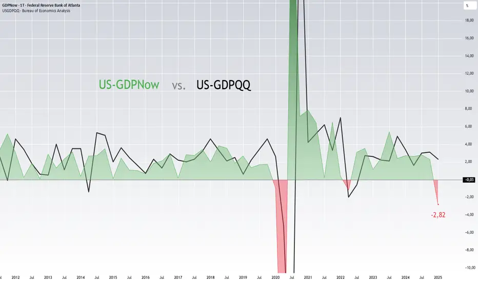 Zum Vergleich das GDP auf Quartalsbasis (GDPQQ), das dem Realtime-Indikator am nächsten kommt.