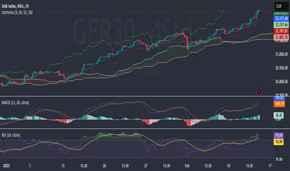 Die markttechnische Betrachtung zeigt, dass der DAX 30 sich in einer überhitzten Marktphase befindet. Die jüngste Rallye hat ihn in Bereiche getrieben, die durch keinerlei fundamentale Entwicklungen gerechtfertigt werden. Technisch gesehen befinden wir uns in einem überkauften Zustand, was das Risiko einer baldigen Korrektur erhöht.