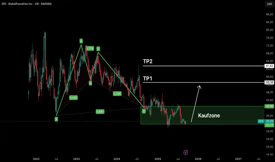 Charttechnisch: Im Wochenchart hat sich ein Bullishes Bat Pattern gebildet. Eigentlich ein vielversprechendes Signal, doch auch nach über 30 Kerzen fehlt bisher die erhoffte Trendwende. Noch keine klare Umkehr. Dennoch bleibt Potenzial: Sollte der Trend drehen, könnte sich eine verspätete Rallye entwickeln.Mein persönlicher Stop-Loss liegt bei 29 $ – fällt der Kurs darunter, ist das Setup für mich erledigt. Auf der Oberseite habe ich zwei Kursziele: