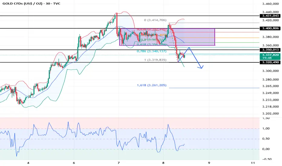 Das Widerstandsniveau auf dem 30-Minuten-Chart liegt bei 3350 und das Unterstützungsniveau bei 3320.