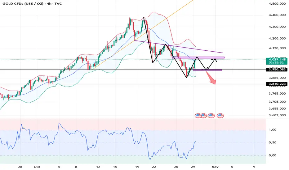 Widerstand im 4-Stunden-Chart: 4050, Unterstützung: 3950.