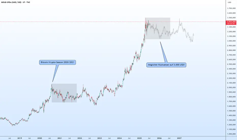 Im Jahr 2020 markierte Gold seinen Höchststand, kurz bevor Kapital in Bitcoin und den Kryptomarkt umzuschichten begann. Es war der Auftakt zu einem massiven Bullrun.