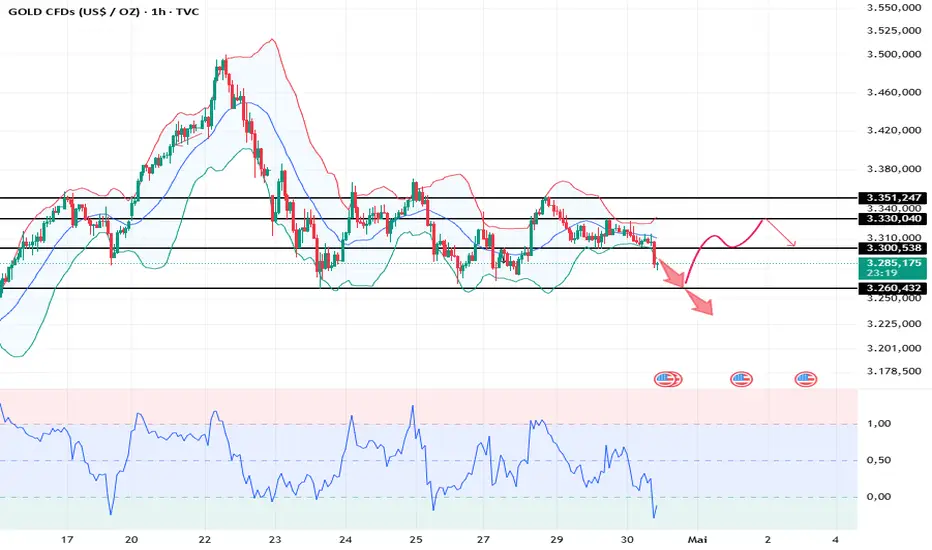 Das Widerstandsniveau auf dem 30-Minuten-Chart liegt bei 3300 und das Unterstützungsniveau bei 3280.