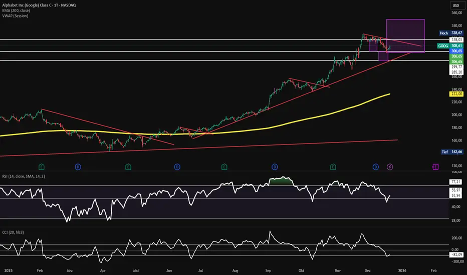 Einsteigen würde ich erst bei ca. 318 USD mit einer Erwartungshaltung von ca.350 USD und natürlich dem Bruch der roten Trendlinie.