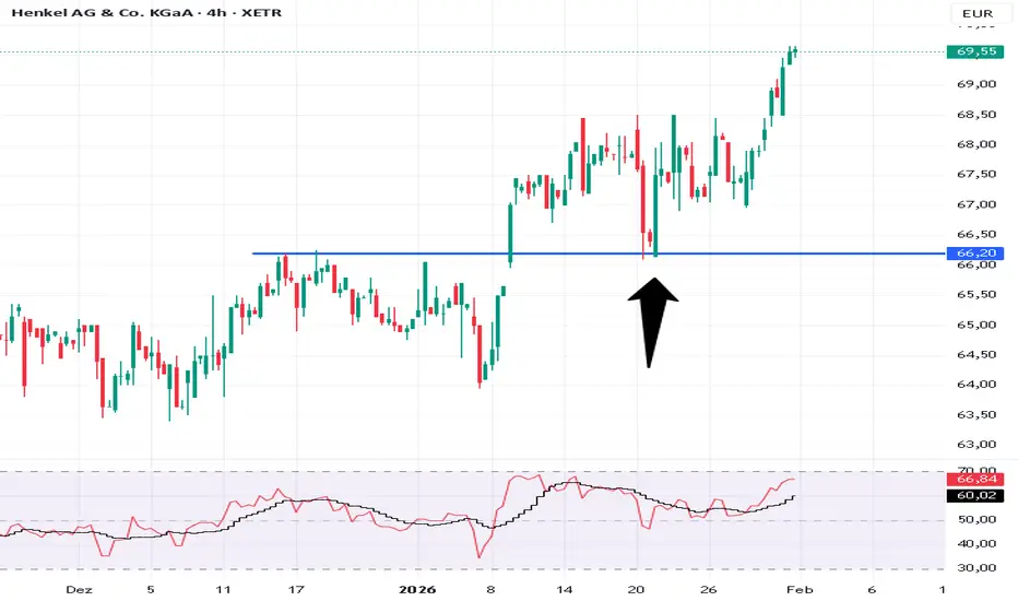 Ein wunderschöner Pullback auf die Ausbruchslinie die eindeutig zur Unterstützung wurde. Die lange kraftvolle grüne Kerze sagt deutlich das hier viele nachgekauft haben. Der SL unter der grünen Kerze ist vertretbar wenn man einfach die Anzahl seiner Scheine auf das Risiko umrechnet. Hätte ich hier nicht mehr wie 100 Euro riskieren wollen und am Ende der grünen Kerze mit SL 2,50 Euro gekauft, hätte ich 40 Aktien kaufen können. weil wenn 40 Aktien in den SL laufen 100 Euro verspielt sind 😪 Also immer daran denken, die Anzahl der Aktien mulzipliziert mit dem stoploss ergeben den maximalen Verlust, die Höhe des Kaufpreises ist völlig egal.😑