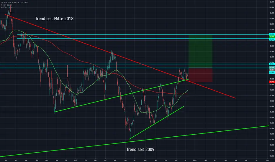 Kursziel ist die Höhe der ehemaligen Trading Range/ des ehemaligen Aufwärtskanals (~23€).