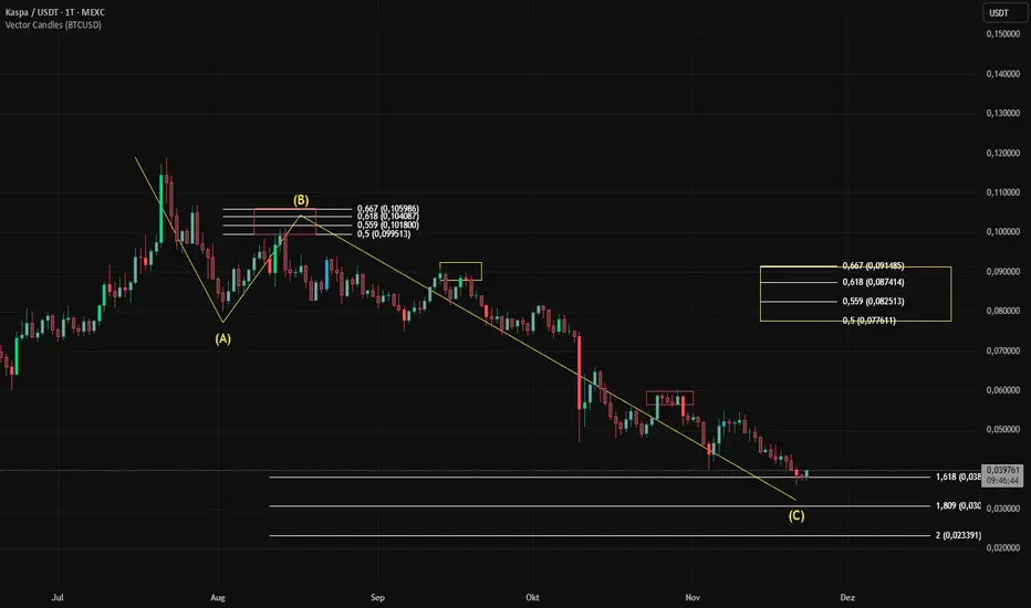 Kaspa sieht ebenfalls sehr gut aus. Kaspa hat sein bärisches SK-Ziellevel erreicht, was auf eine mögliche Trendwende hindeuten könnte. Die nächste wichtige Hürde liegt im Bereich von 0,07 bis 0,09 USD. Was das endgültige Ziellevel betrifft, kann ich aktuell noch keine Aussage treffen – das müssen wir weiter abwarten.