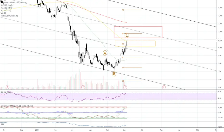 Ein hochlauf bis zur MA200 halte ich für momentan noch schwierig, ich rechne vorerst mit einem Rücksetzer, einschließlich Konsolidierung. RSI im oberem über kauftem Bereich.