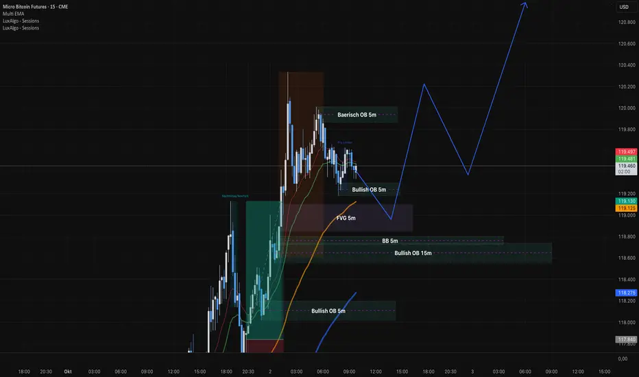🟦 BB 5m + Bullisher OB 15m (tiefer) = starke Demand-Konfluenz / letzte Long-Verteidigung