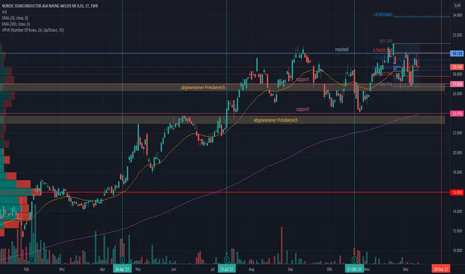 Der Widerstand liegt bei ca. 30 Euro, im September und November 2021 konnte der Widerstandsbereich durchbrochen werden. Erst wenn die Marke von 31 Euro nachhaltig durchbrochen wird, ist weiteres Aufwärtspotenzial möglich.