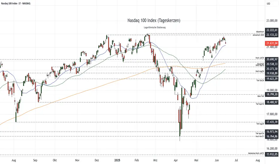 Analyse beim Kurs des Nasdaq 100 Index von 21.631 Punkten