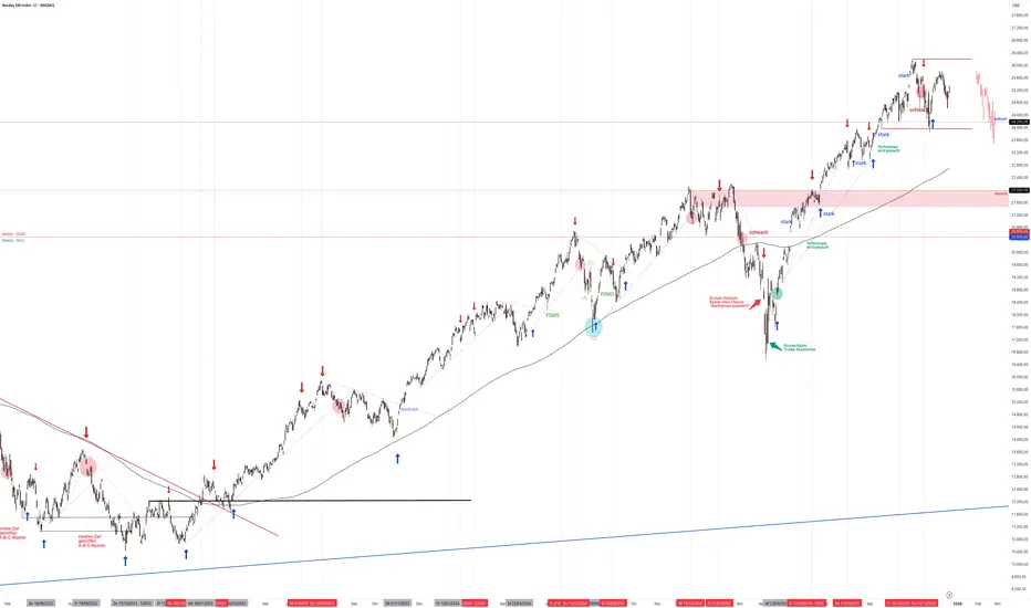 Die Nasdaq hat eine bewegte Woche hinter sich und steigt zum Wochenschluss auf 25346 Punkte. Die Nasdaq ist in ihrem Seitwärtskanal gefangen und schwankt auf und ab.