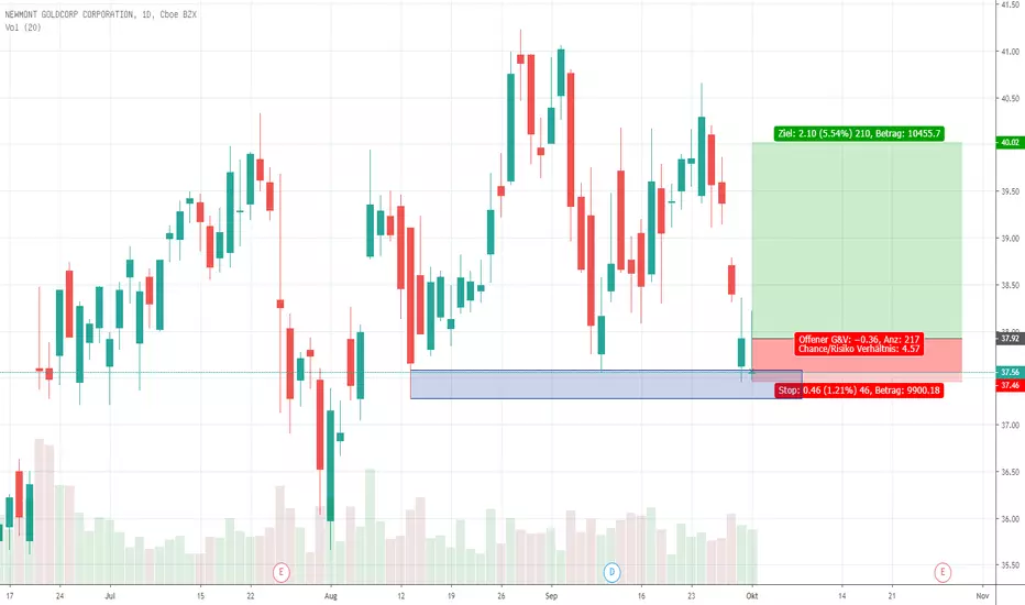 NEM ein klarer Kauf. Alleine wegen des Dreifachbodens um 37,5 USD. Dazu kommt aber noch das Intraday-Reversal vom letzten September-Handelstag. Wenn die Aktie wieder in die Nähe dieses Schlusskurses bei 37,9 kommt greife ich zu, mit einem schönen CRV von 4,5.