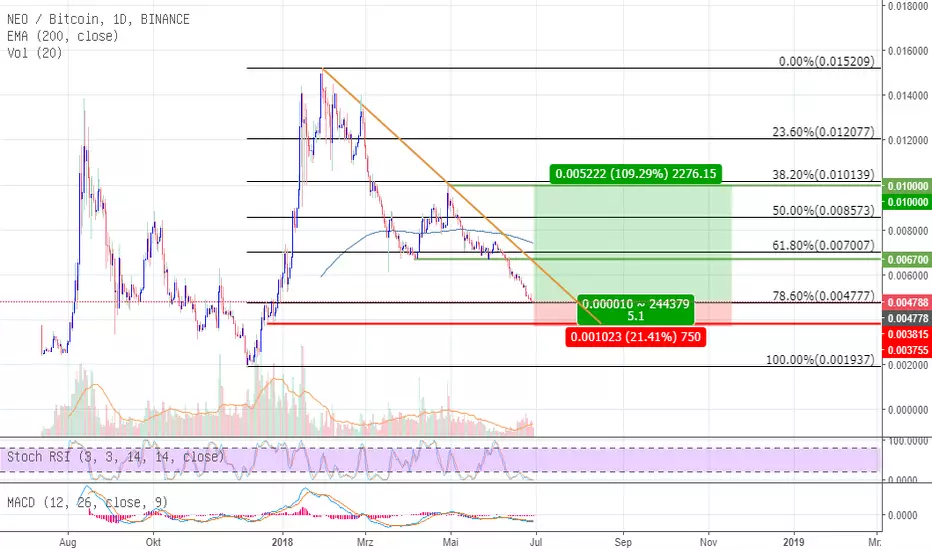 NEO hat den Support lvl bei 78Fib erreicht. werde hier einen Trade starten.