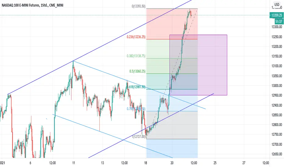Mit meiner Einschätzung lag ich leider falsch, dass er direkt im eingezeichneten Rechteck konsolidiert. Das erste anlauf Ziel dürfte das 23 Fibo sein. Ich gehe aber davon aus dass das alte ATH bei 13126 als Unterstützung angetestet wird.
