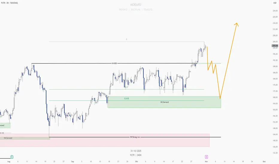Letzter H4 Break of Structure (BOS) über 190 USD → Marktstruktur bullish