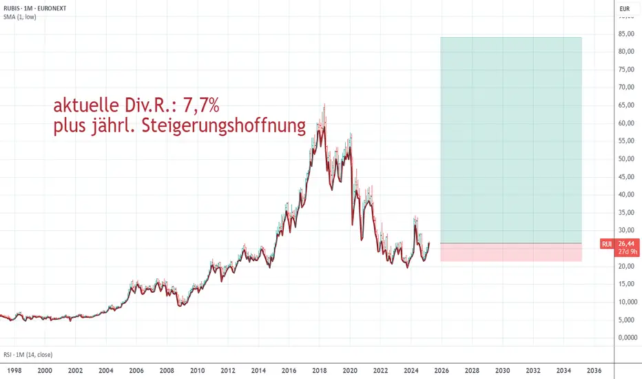 Kursfantasie für die nächsten 10 Jahre, wenn die Geschäftszahlen (Gewinne, Umsätze, Dividenden) ihren Trend beibehalten und die Kurskorrelation bleibt.