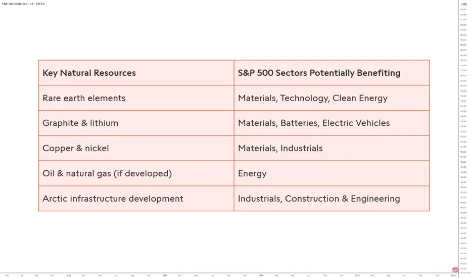 Gleichzeitig ist zu betonen, dass die Erschließung dieser Ressourcen erheblichen Einschränkungen unterliegt: extreme klimatische Bedingungen, hohe Investitionskosten, Umweltauflagen, lokale gesellschaftliche Akzeptanz sowie strenge regulatorische Rahmenbedingungen. Potenzielle wirtschaftliche Effekte wären daher zwangsläufig graduell, indirekt und langfristig. Ziel dieser Analyse ist es nicht, kurzfristige Marktkatalysatoren zu identifizieren, sondern vielmehr Sektoren des S&P 500 hervorzuheben, die langfristig von einer solchen strukturellen Entwicklung beeinflusst werden könnten.