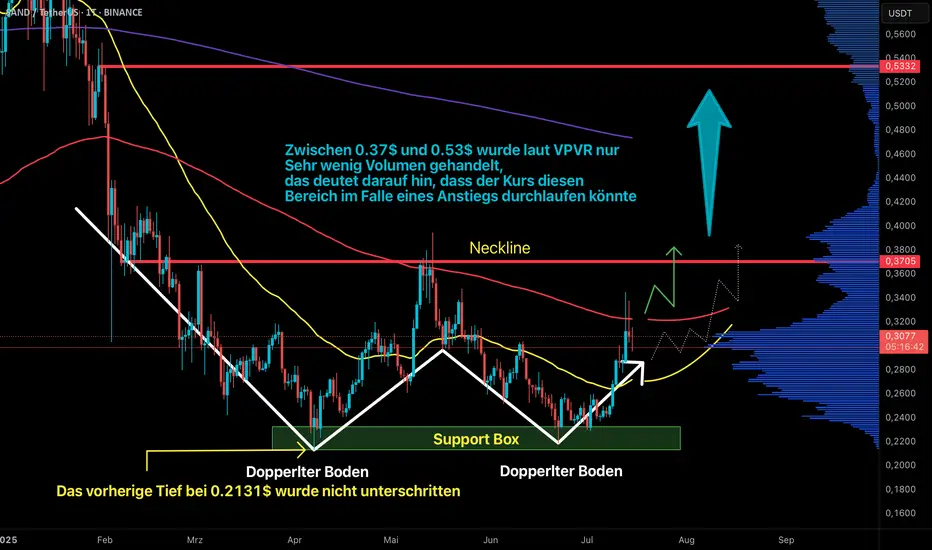 Marktanalyse SAND (Tageschart) – Fokus auf Bodenbildung und EMA-Struktur