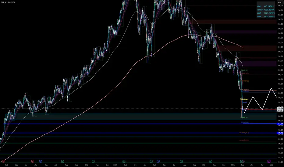 Auf der Unterseite ist zu beachten, dass unterhalb der Supportzone eine Gap beginnt, die sich von 157 bis etwa 149 EUR erstreckt. Sollte der Bereich zwischen 160–165 EUR verloren gehen, wäre ein Abverkauf in diese Zone technisch logisch.