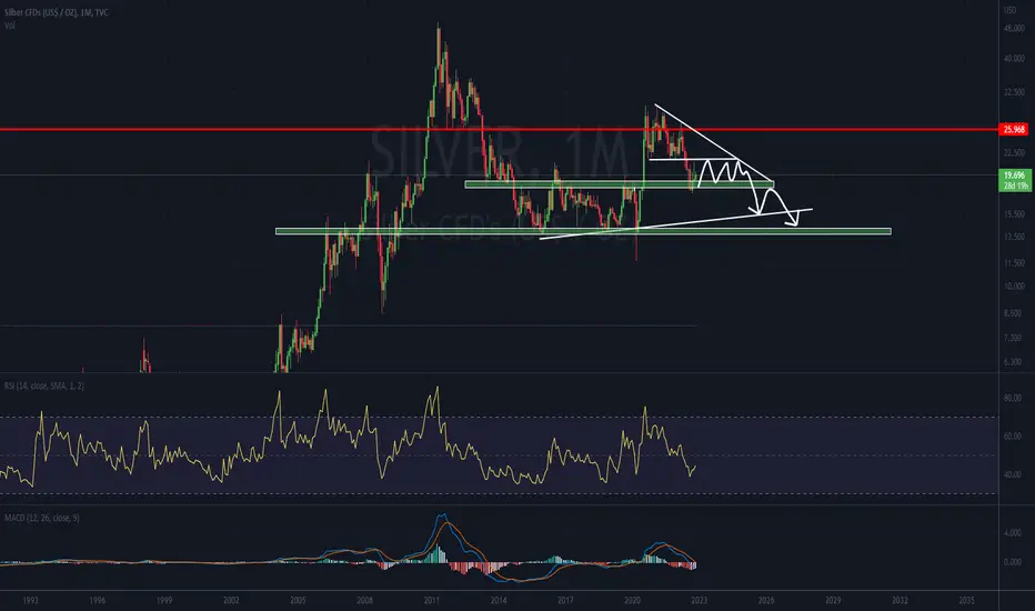 Der Silber Kurs konnte vor Kurzem aus dem absteigenden Dreieck ausbrechen. Kurze Zeit später wurde der Ausbruch aus dem Dreieck durch einem Retest bestätigt. Dadurch, dass sich der Silber Kurs bis zur eingezeichneten Unterstützung erholt hat, besteht die Wahrscheinlichkeit, dass ein weiteres absteigendes Dreieck gebildet wird.