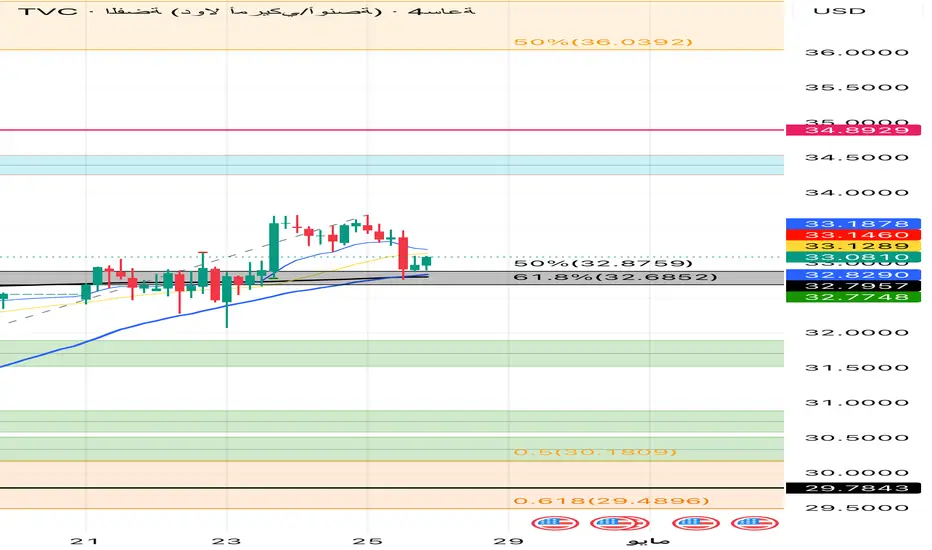 • توجد محاولة حالية للارتداد من منطقة Discount بين مستويات 32.80–32.68.