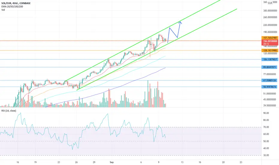 SOL läuft in einem wunderschönen Aufwärtskanal. Solange er weiterhin so verläuft geht es weiter Aufwärts