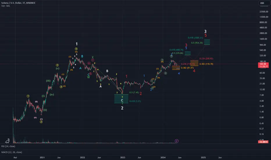 Hab mein Solana Chart neu bearbeitet. Mögliche Impuls Bewegung als Welle 3 bei 1500 Dollar .
