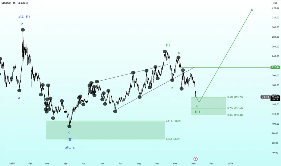 Mit etwas komplexerer Struktur konnte Solana einen 5teiler (I) bauen. Danach folgte auch ne schöne 3-teileige abwärts Bewegung für die (II), jetzt sollte die (III) starten.
