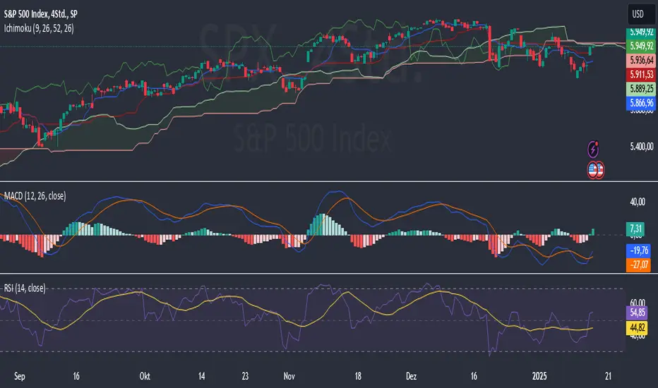 Der S&P 500 zeigte zuletzt eine Seitwärtsbewegung, bei der sich die Marktteilnehmer zwischen Optimismus und Vorsicht bewegen. Die jüngste Erholung könnte ein Hinweis auf kurzfristige Stärke sein, jedoch bleibt die Marktstruktur fragil. Die Marktdynamik wird weiterhin durch makroökonomische Faktoren und Unternehmensmeldungen beeinflusst.